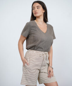 YEHUDIT חולצת פולו טקסטורת עלים חום אספרסו