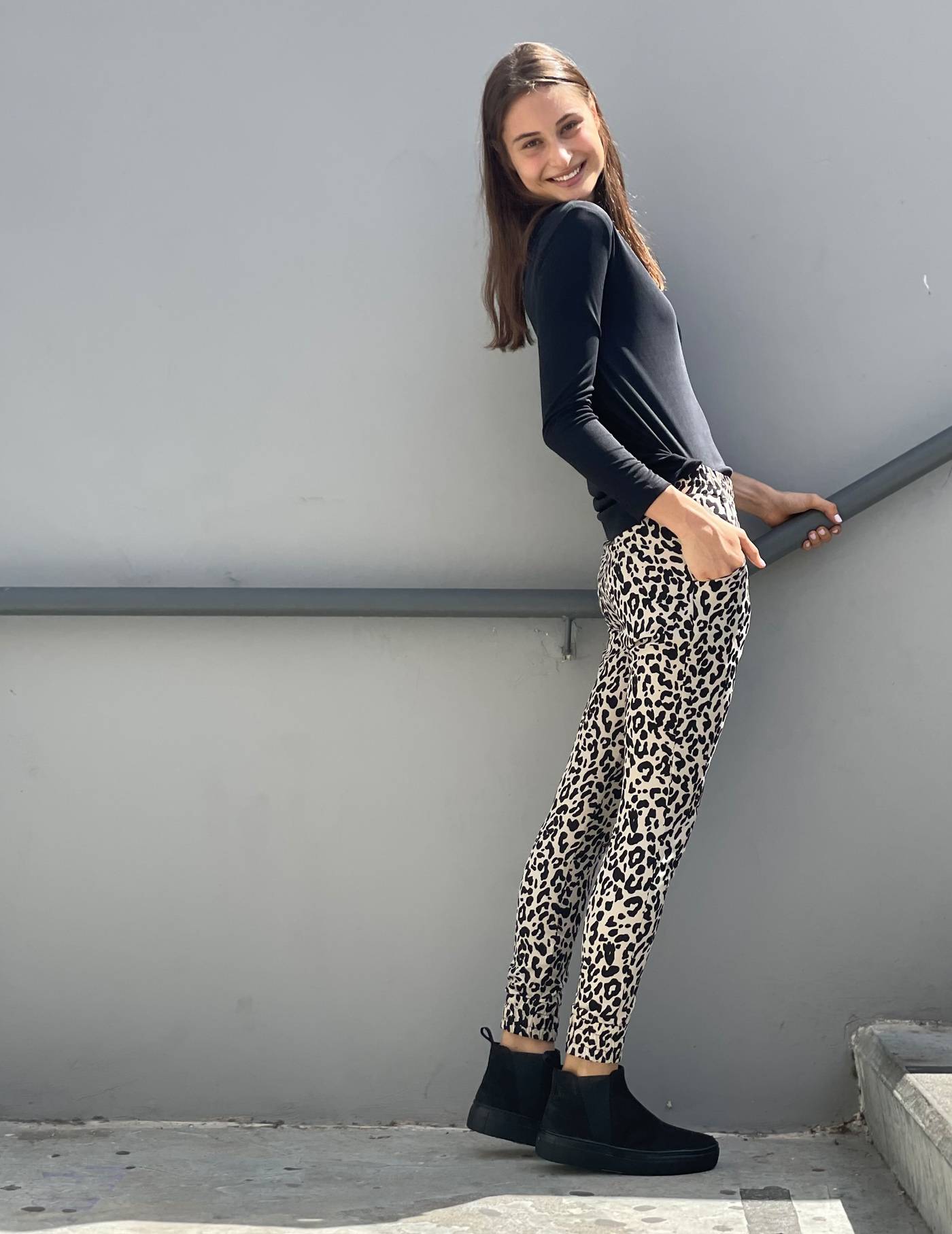 מכנסיים בגזרה ספורטיבית הניתנים ללבישה גבוה או נמוכה