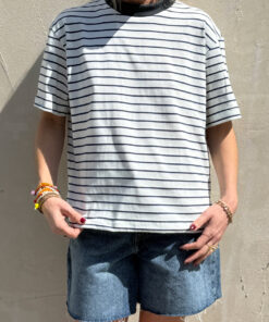 NO.14 טי שירט צמודה שרוול קצר פסים ורוד נייבי
