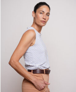 NO.14 טי שירט צמודה שרוול קצר פסים ירוק לבן